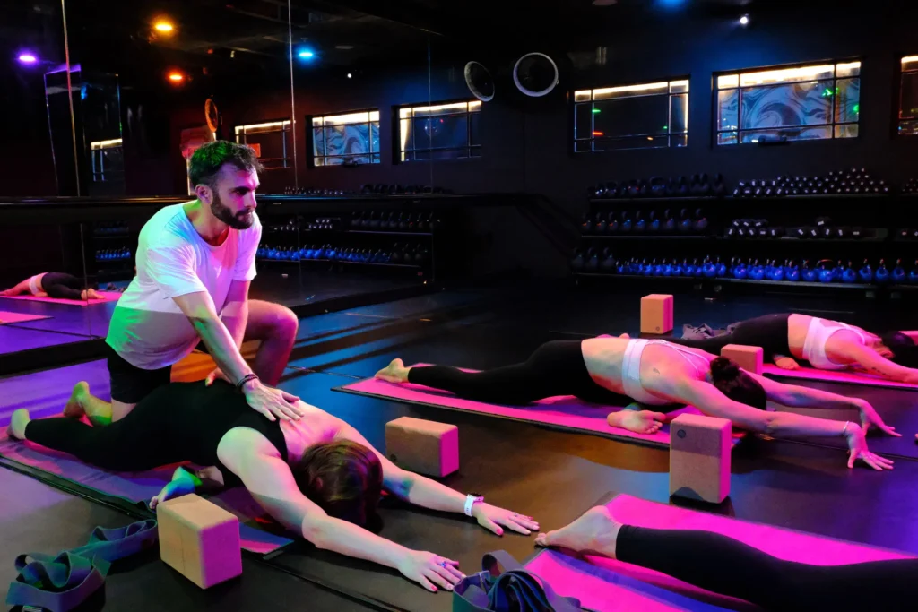 Turn up the heat with this high-energy FC Yoga Sculpt class that blends strength training, cardio bursts, and spicy vinyasa flows. Set in a heated room and paired with a motivating playlist, this class uses light weights and dynamic movement to tone muscles, boost endurance, and ignite your inner fire. Expect squats, planks, curls, and sweat—lots of it.